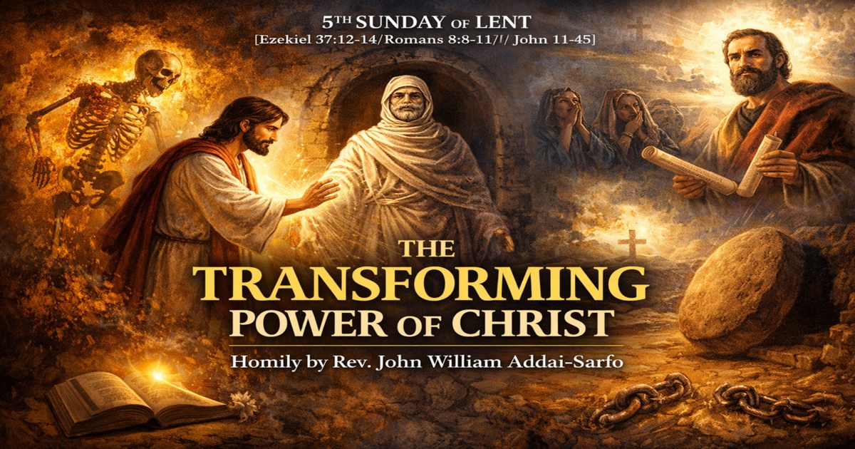 My dear people of God, the fifth Sunday of lent in year A leads us into one of the most profound and emotionally powerful moments in the Lenten journey: the raising of Lazarus in Gospel of John, together with the promise of restoration in the Book of Ezekiel and St. Paul’s teaching on life in the Spirit in Romans. All three readings proclaim one central truth: God through his transformative power brings His people from death to life. As we approach the Holy Week, the liturgy invites us to encounter Christ who alone has the power to transform our lives. I would like us to look at four important points that will help us experience the transforming power of Christ.